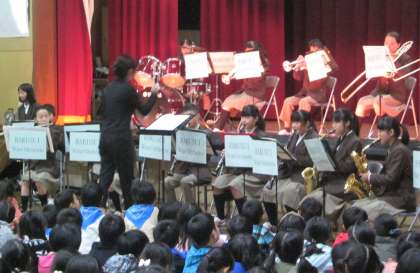 本日、吹奏楽部は納所小学校の学習発表会に参加し、演奏してきました。