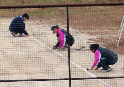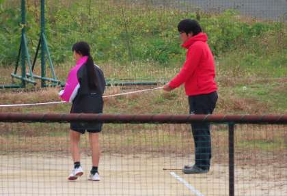 ソフトテニス部の様子です。ラインテープを貼っていました。