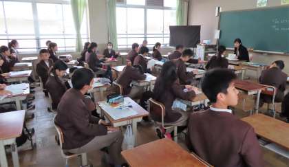 2限の授業の様子です。上から、2組 国語、3組 社会、4組 理科 です。テストの返却が行われていました。間違い直し(間違ったところ、テスト当日に十分わからず解答して正解したところ)をきちんとしておきましょう。