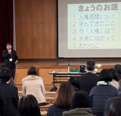 〇12月は人権月間です。一人一人の人権を大切に、あらゆる差別を