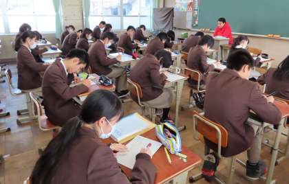 4限の授業の様子です。上から、2組 英語、3組 数学、4組 理科 です。