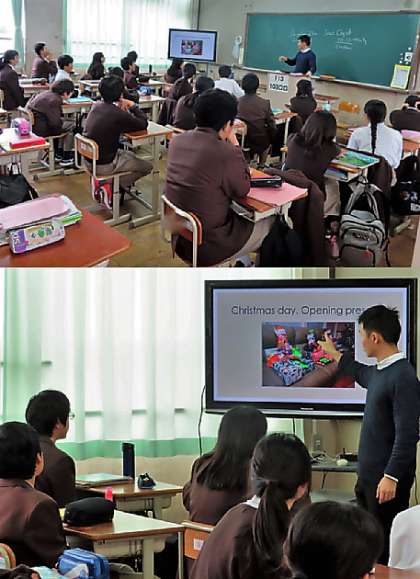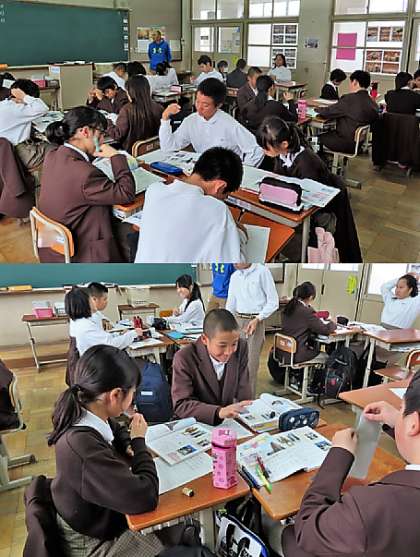 4限の授業の様子です。上から、2組 社会、3組 英語、4組 理科 です。