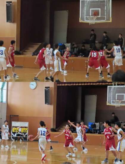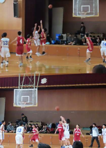 バスケットボール部の様子です。バスケットボール協会の試合(U−15)をしていました。