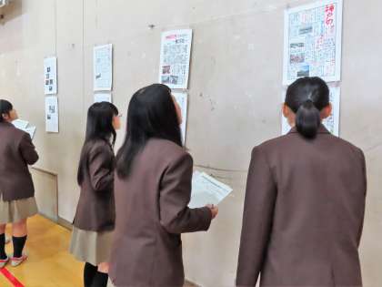 本日の6限、2年生は11月に実施した校外学習のまとめをした新聞発表会を実施しました。
