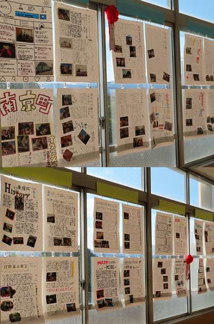 放課後の様子です。本日より三者懇談会が始まりました。保護者の皆様、各教室の前にアンケート用紙が置いてあります。これからの本校の取組にいかすものです。アンケートにご協力ください。また、各廊下には、生徒の作品が掲示されています。お時間がありましたらご覧下さい。写真は、2年生の校外学習のまとめの新聞です。