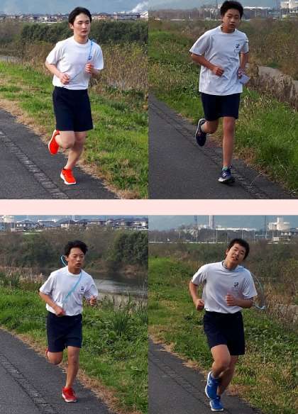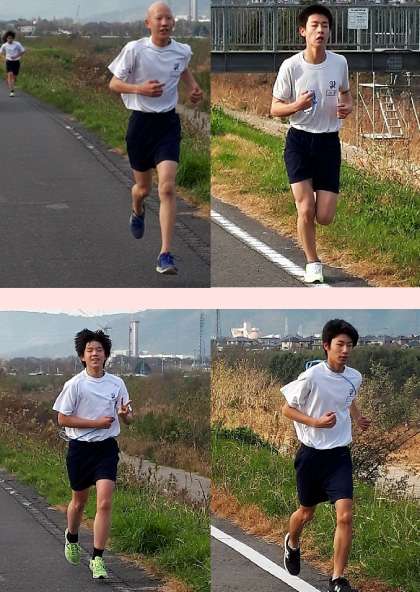 スタートから第1チェックポイントを折り返して第2チャックポイントへ向かう途中。マラソン大会前半の様子です。