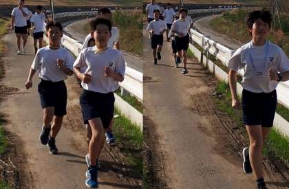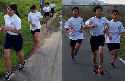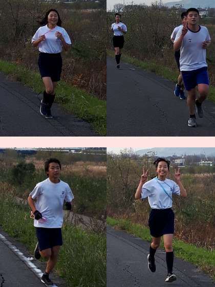 スタートから第1チェックポイントを折り返して第2チャックポイントへ向かう途中。マラソン大会前半の様子です。