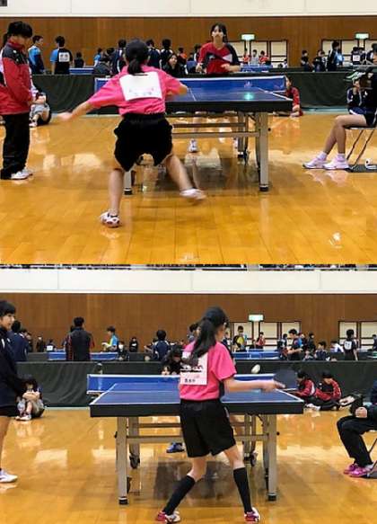 本日、卓球協会主催の大会(団体戦)が、太陽ヶ丘の体育館で行われています。女子は、初戦で北野中学校と対戦し、1−3で敗れました。