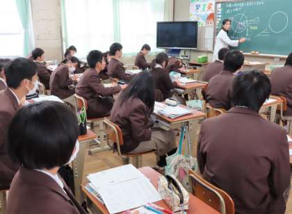 3限の授業の様子です。上から、2組 英語、3組 理科、4組 社会 です。
