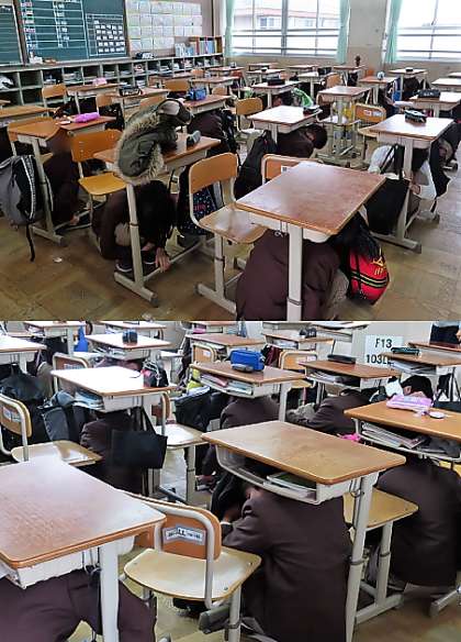 本日の6限、震度6弱程度の地震が発生した想定で避難訓練を行いました。みんな真剣に取り組んでいました。この機会に、各家庭で避難場所等の確認をしてもらいたいと思います。