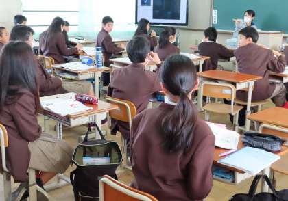 3限の授業の様子です。上から、2組 美術、3組 理科、4組 英語 です。