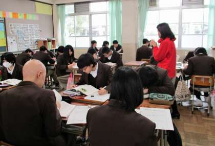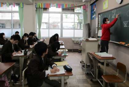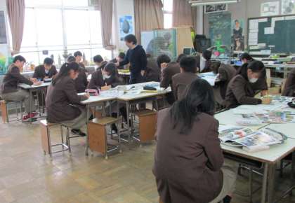 2限の授業の様子です。上から、2組 数学、3組 美術、4組 国語 です。
