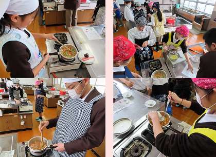 3限(2組)の家庭科・調理実習の様子です。ミネストローネを作りました。1年生の調理実習の様子です。