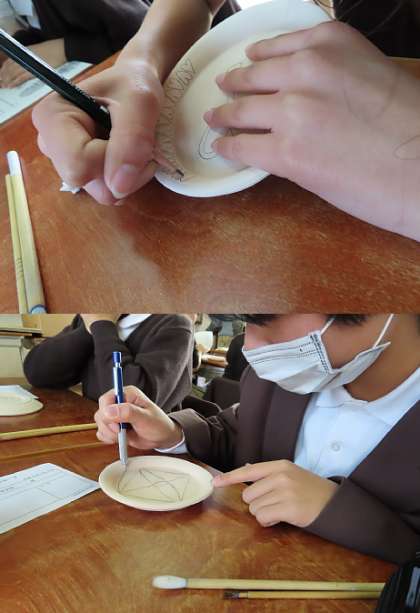 鉛筆を使って、下絵を描いています。