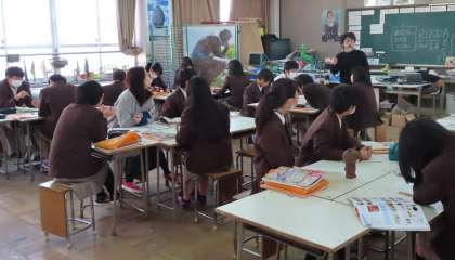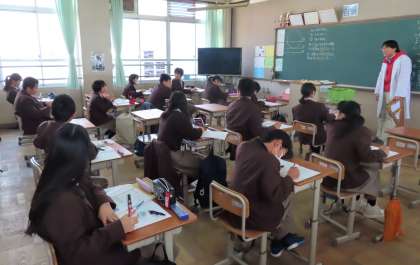 2限の授業の様子です。上から、2組 数学、3組 美術、4組 理科 です。