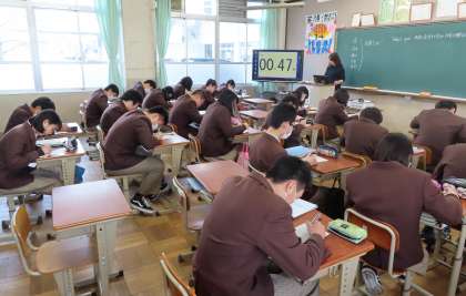 2限の授業の様子です。上から、2組、3組 体育、4組 英語 です。