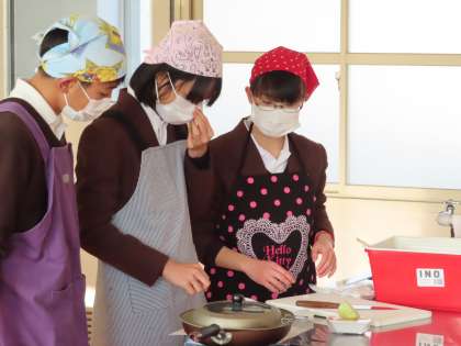 本日、2年生は家庭科の時間に調理実習を行い、肉まんを作ります。2限の2組の様子です。
