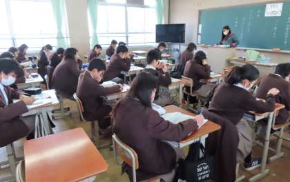 1限の授業の様子です。上から、2組 美術、3組 理科、4組 国語 です。