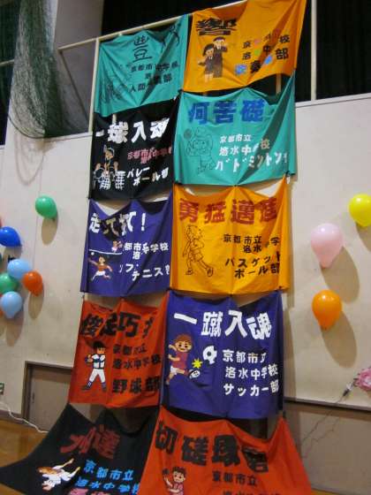 上の写真は、3年生が後輩たちに作ってくれた部旗。