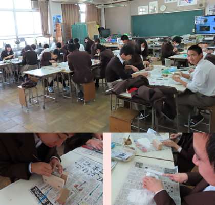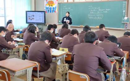 2限の授業の様子です。上から、2組 美術、3組 理科、4組 家庭 です。
