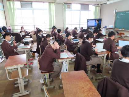 5限の授業の様子です。上から、2組 英語、3組 理科、4組 数学 です。