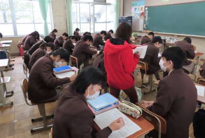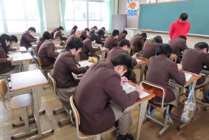 1限の授業の様子です。上から、2組 数学、3組 英語、4組 社会 です。