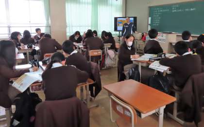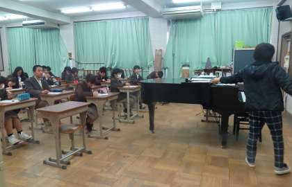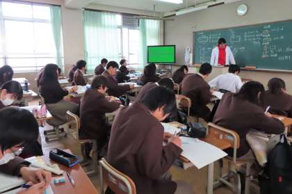 5限終了後、「3年生は終学活を行い下校」「2年生は、テスト前学習会」「1年生は先日のインフルエンザによる学年閉鎖の回復授業」でした。(1年の回復授業の様子です。上から、2組 音楽、3組 数学、4組 社会 です。)