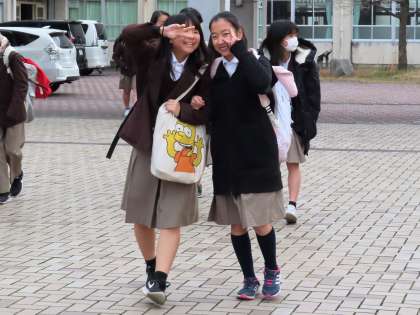 下校の様子です。本日より、1,2年生が総括テスト一週間前になります。終学活終了後に下校しました。また、帰宅後は、手洗いやうがいをきちんとしましょう。1,2年生は総括テスト前、3年生は公立前期選抜前となります。健康面には十分注意してください。
