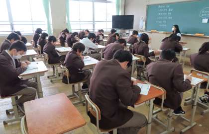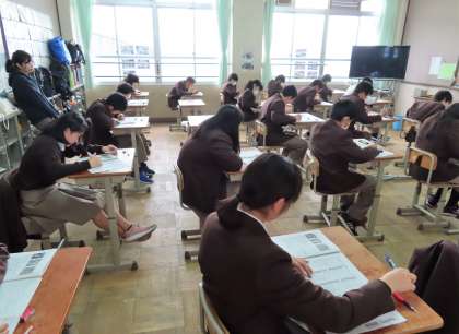 2限の社会のテストの様子です。上から、2組、3組、4組 です。