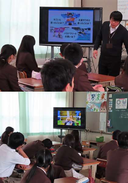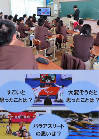 パラリンピックを切り口として、様々な個性を持つ人々との共生社会を実現するために、自分たちに何ができるかを考えました。「障害のある人を特別視するのではなく、けれども、必要な手助けが当たり前にできるように、まずは相手のことを知ろうとする」「積極的にコミュニケーションをとる」「障害についての知識を得る」「相手の立場に立って考える」などの意見が共有できました。卒業を前にした3年生にとって、これからの社会を生きていく上で、大切なことを知り考えた時間でした。