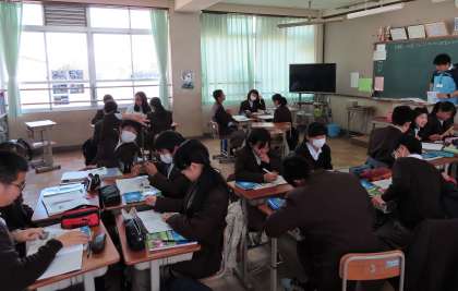 2限の授業の様子です。上から、2組 理科、3組 英語、4組 国語 です。