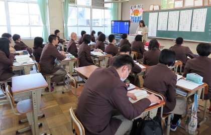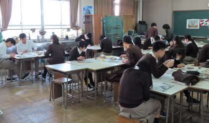 2限の授業の様子です。上から、2組 数学、3組 美術、4組 国語 です。