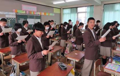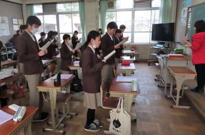 6限に全学年、3年生を送る会の練習をしていました。3年生の様子です。