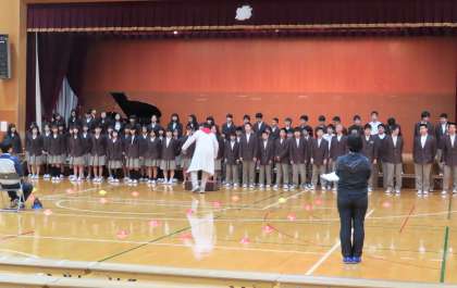本日の5限、1,2年生は、3月8日に行われる「3年生を送る会のリハーサル」を行いました。