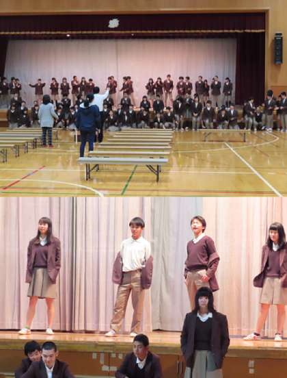 本日の6限、1年は格技室で、2年は体育館で、明日行われます3年生を送る会に向けての取組をしていました。