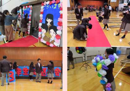 本日の放課後、1年生、2年生が明日行われる「3年生を送る会」の準備をしてくれていました。準備の後は、吹奏楽部と生徒会の子どもたちがリハーサルをしていました。