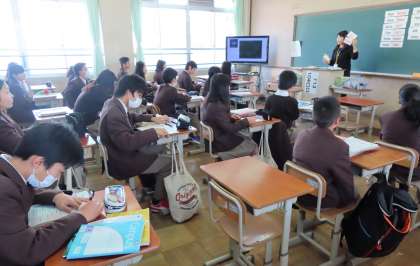 1限の授業の様子です。上から、2組 理科、3組 社会、4組 英語 です。