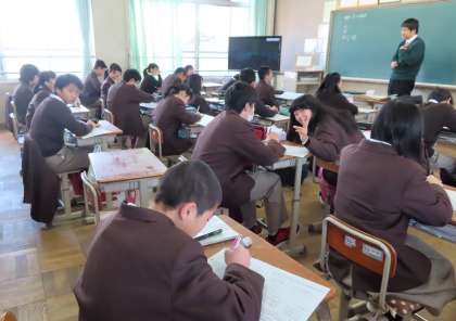 1限の授業の様子です。上から、2組 家庭、3組 国語、4組 数学 です。