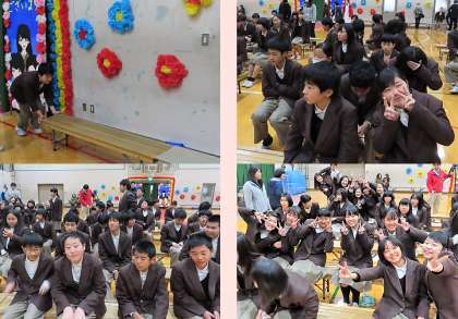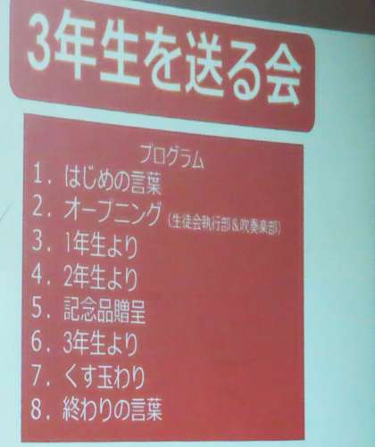 本日の2,3限に「3年生を送る会」が生徒会本部の子どもたちの進行で行われています。送る会直前の様子です。