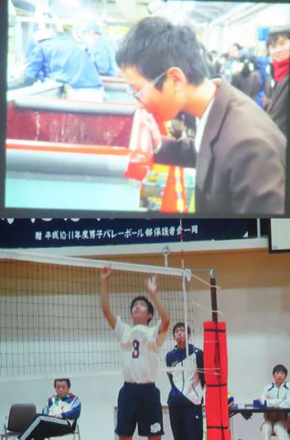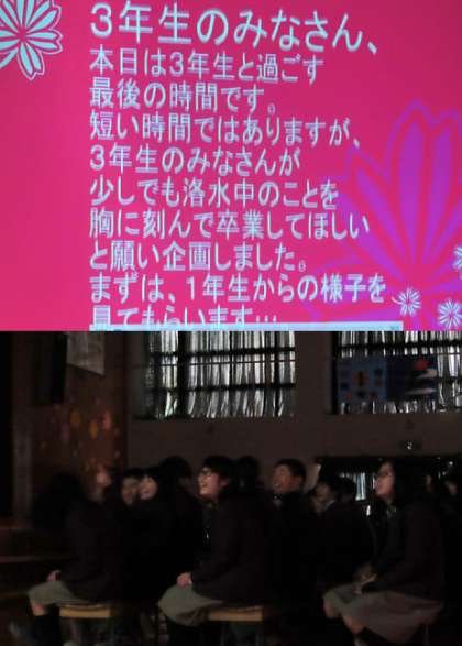 ビデオ上映の様子です。3年間の思い出(行事や部活動の様子など)や部活動の後輩からのメッセージが上映されました。