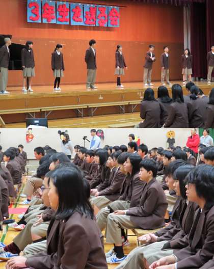 在校生から3年生に向けての発表です。1年生の様子です。