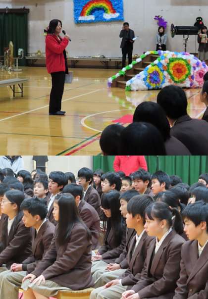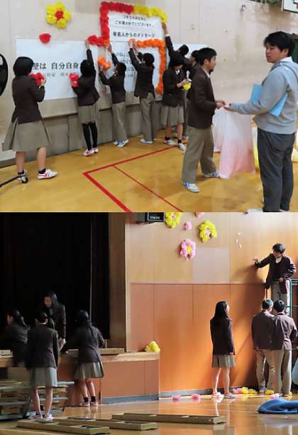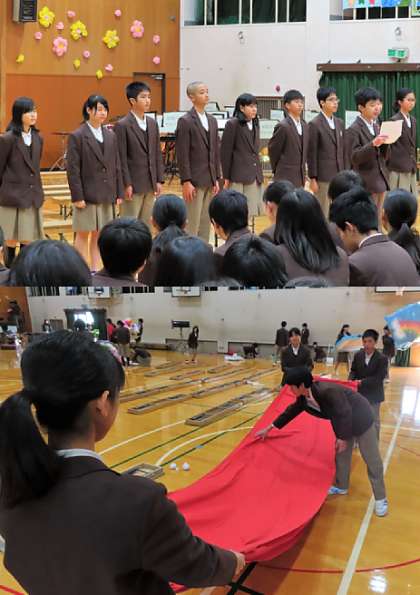 3年生が退場後に、3年の学年主任の先生から1,2年生にお礼の挨拶がありました。また、生徒会長からも頑張ってくれた友達への感謝の気持ちが述べられました。最後に、みんなで後片付けをして送る会が終了しました。ありがとう。