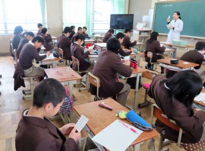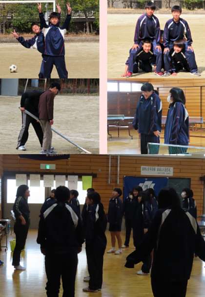 2限の授業の様子です。上から、2組、3組 体育、4組 理科 です。