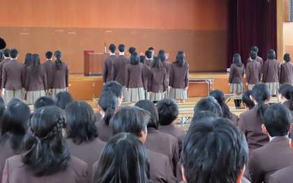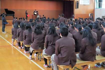 本日の2,3限に、1,2年生も参加しての卒業式予行を行いました。写真は、3年生入場、卒業証書授与の様子です。
