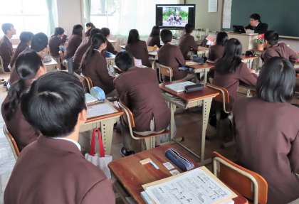 3年生は予行の後、教室に戻って最後の学活をしていました。2組の様子です。