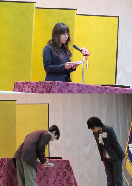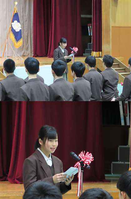 式辞、祝辞、記念品授与、送辞の様子です。