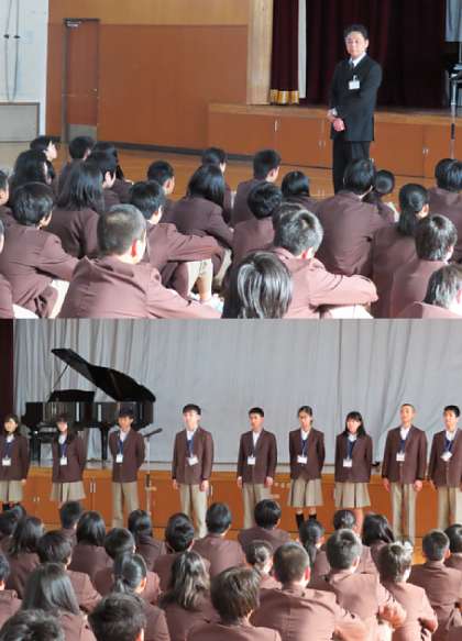 平成30年度修了式が行われました。修了式は、校歌斉唱に始まり、校長先生・生徒会長・生徒指導の先生からの話、諸連絡と続きました。校長先生のお話では、「心の成長」についておはなしされていました。