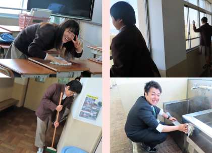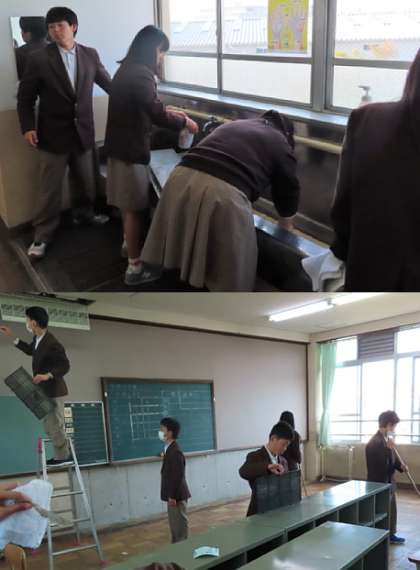 大掃除の様子です。いつもできないところを念入りに掃除してくれています。