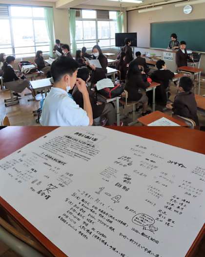 1年の学活の時間の様子です。前半の各クラスでの学活です。