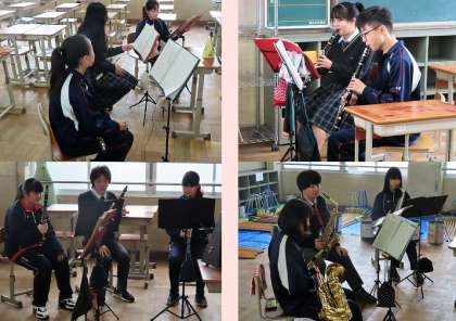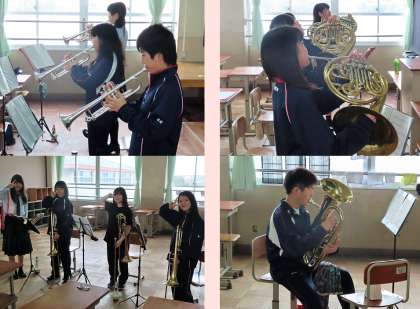 吹奏楽部の様子です。明日の洛水高校の定期演奏会に参加するために高校生と合同練習をしていました。